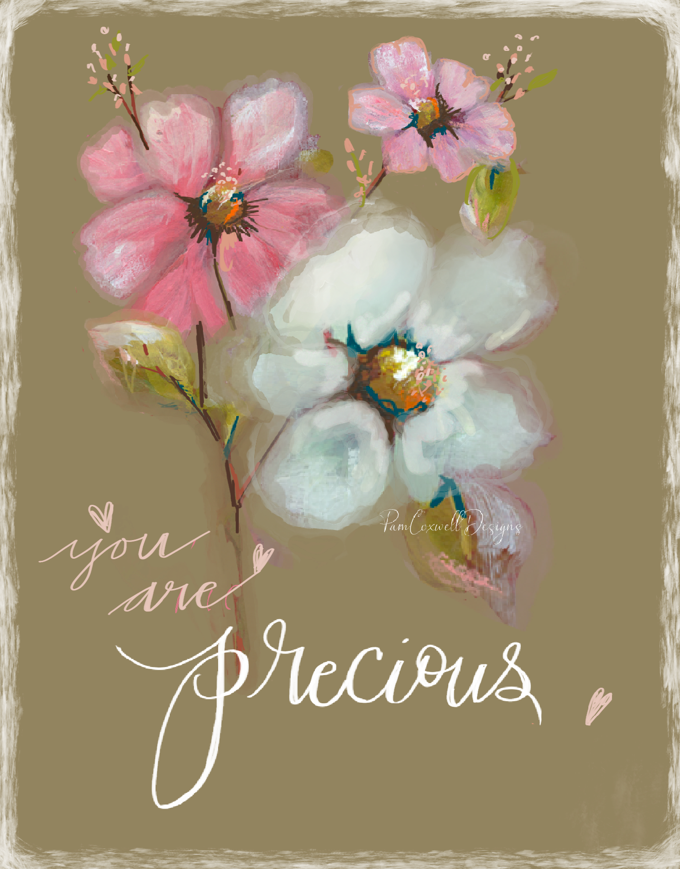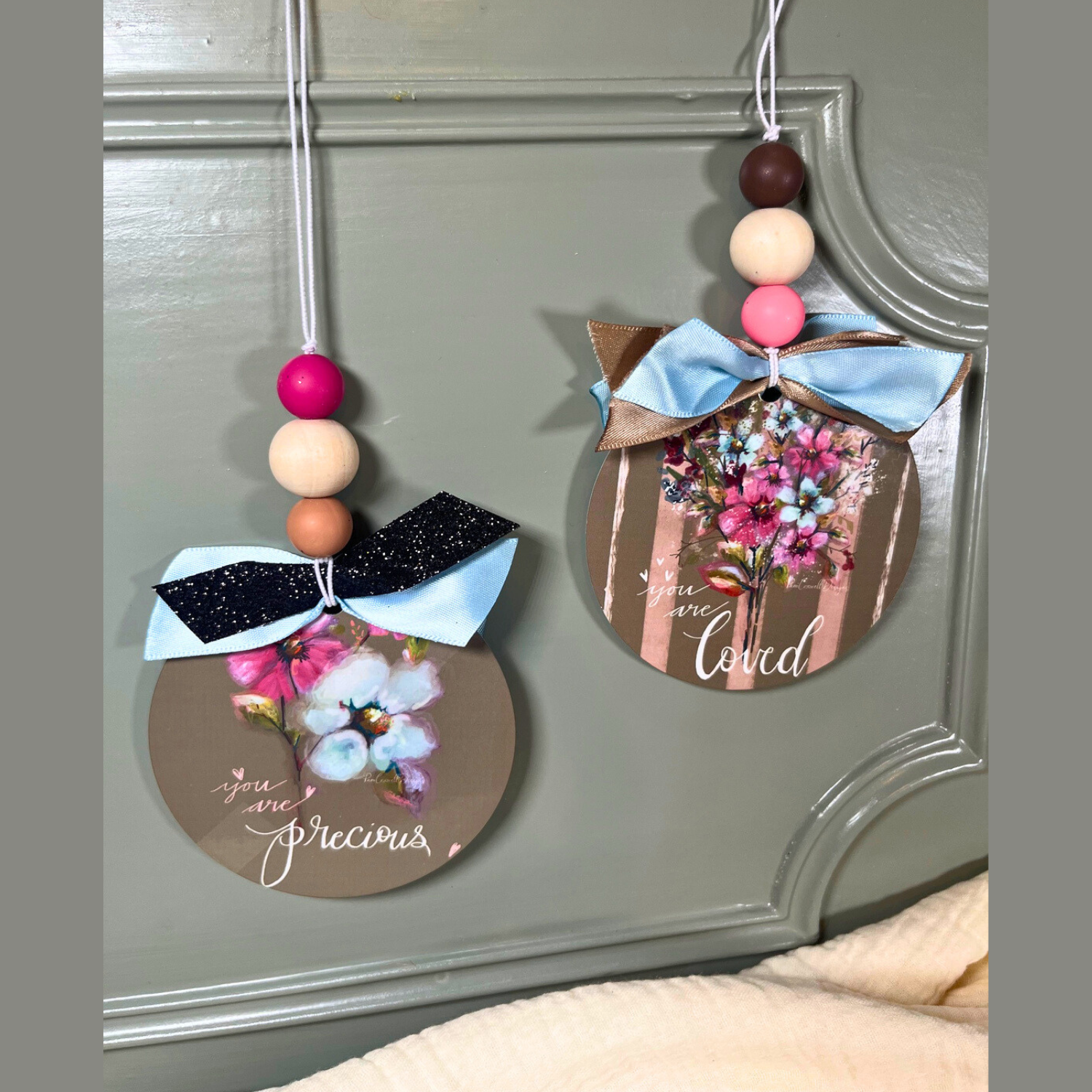 This car charm features a never-before-seen design! "You Are Precious & Loved", an original design painted by Pam Coxwell.